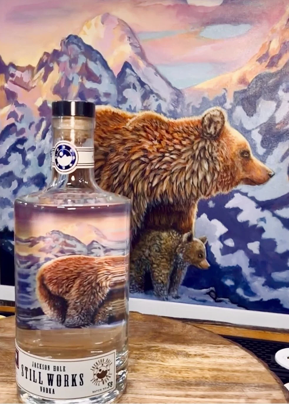 Titled “Mountain Mama” my label design for Jackson Hole Still Works Vodka depicts the beloved bear #399 and her cub, celebrating the wild spirit of Wyoming.